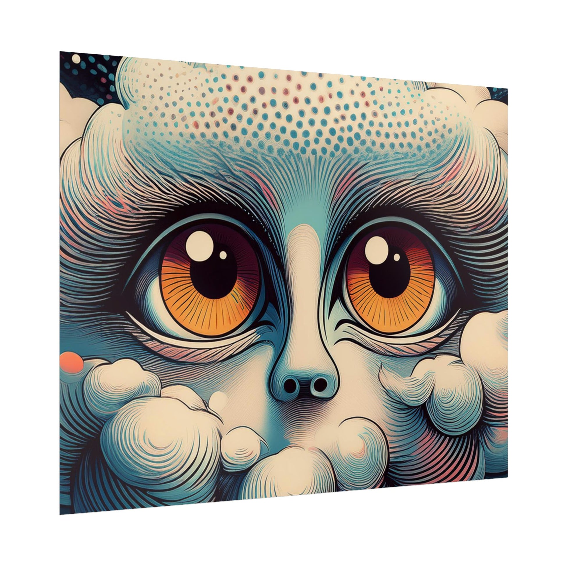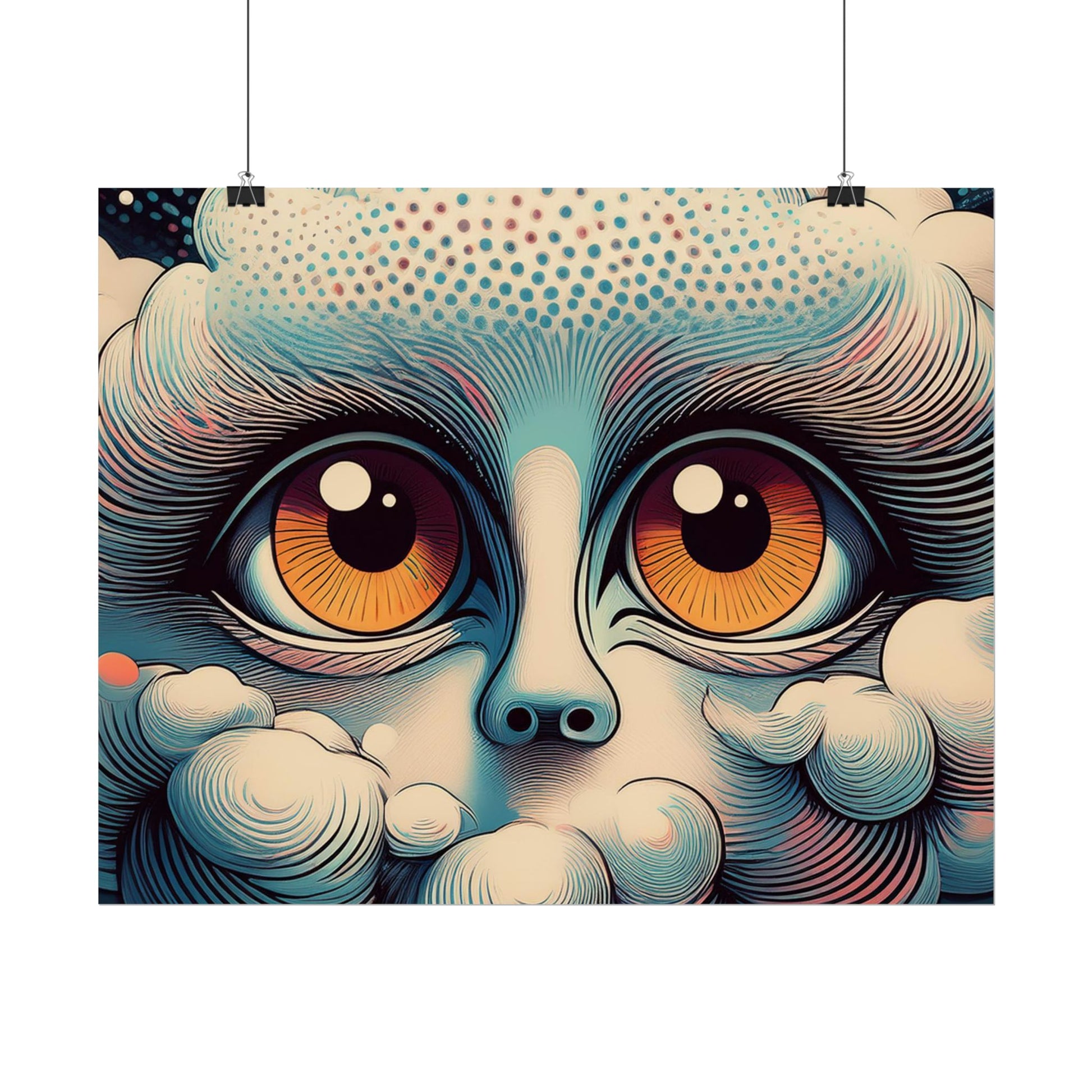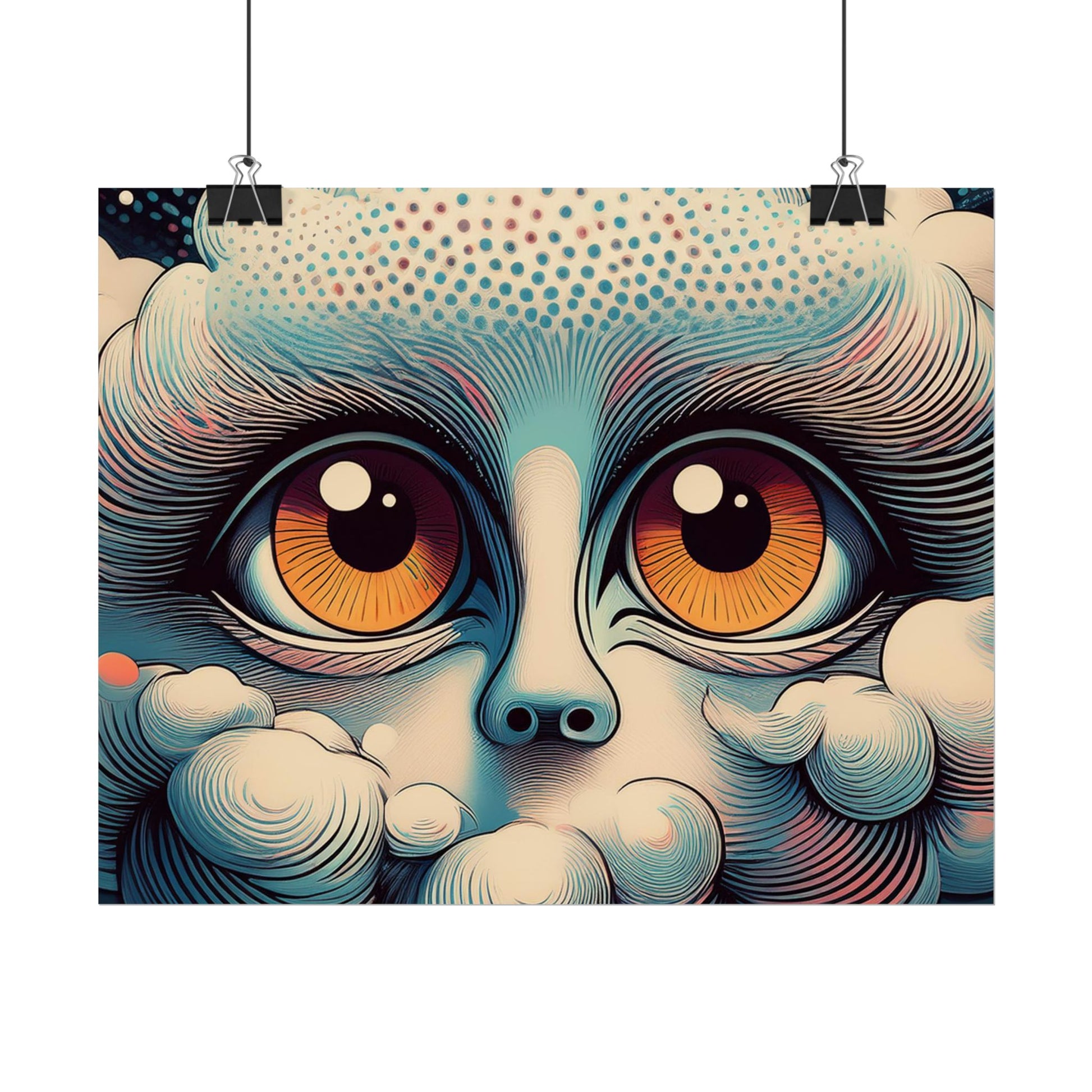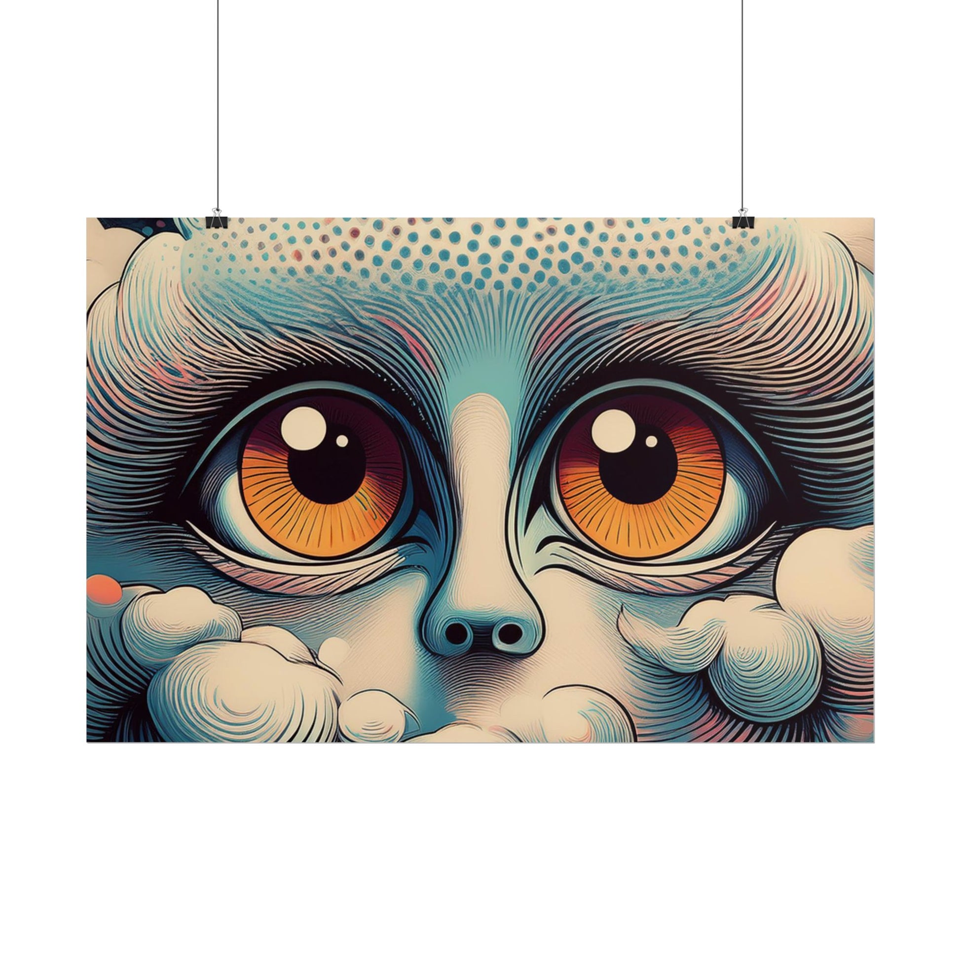 This surreal cloud eyes poster will add a dreamy touch to your home decor. Perfect for those who appreciate unique and artistic wall art. Ideal for individuals who enjoy a whimsical and ethereal vibe in their living space. Suitable for holidays, celebrations, and occasions where a creative and imaginative atmosphere is desired.