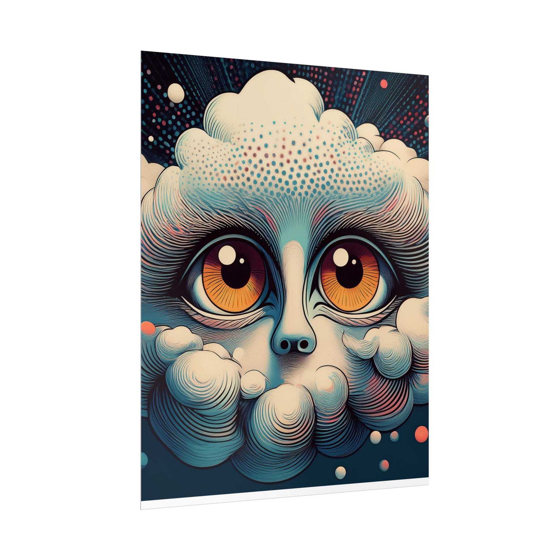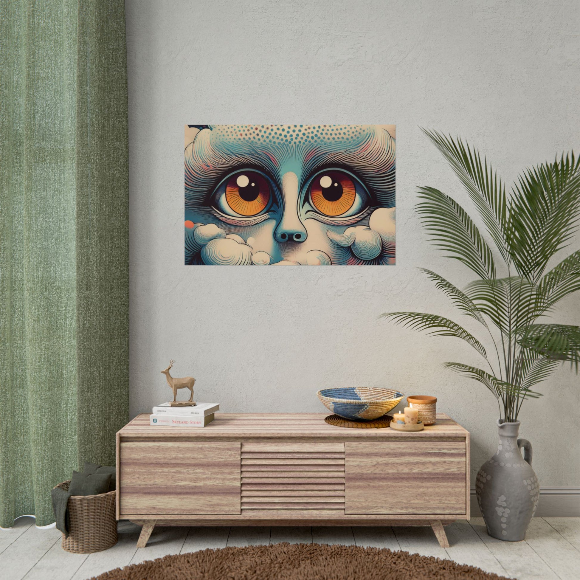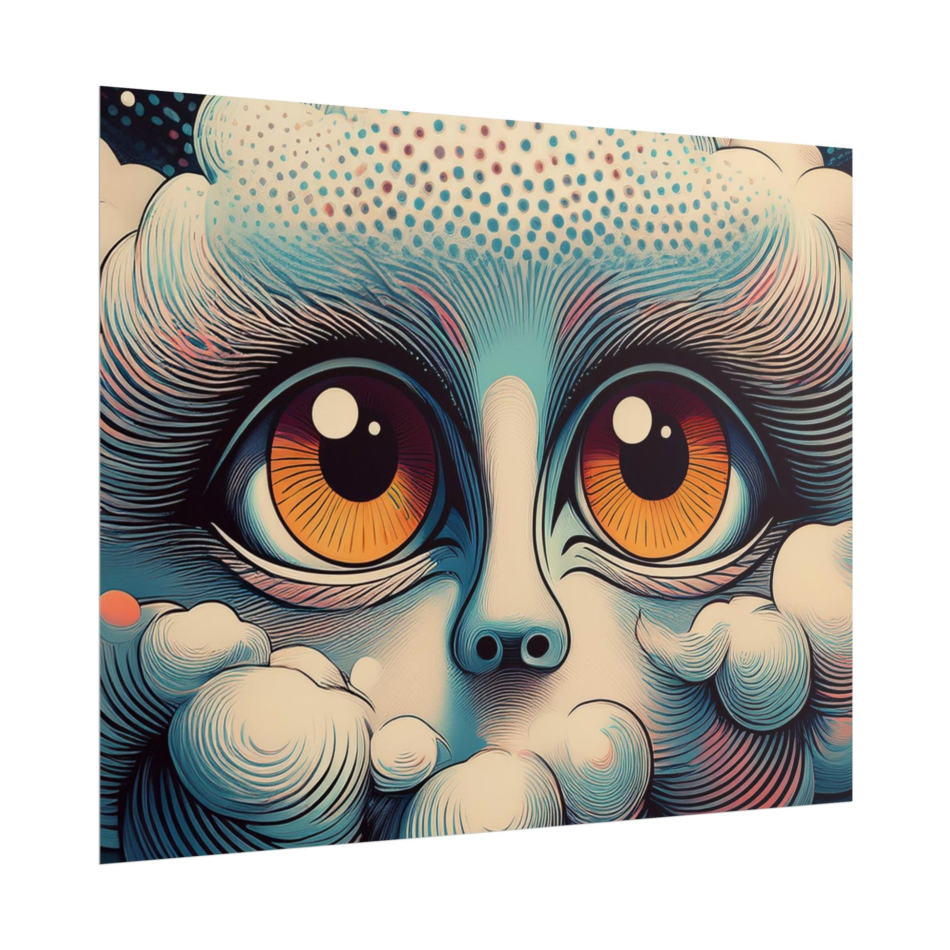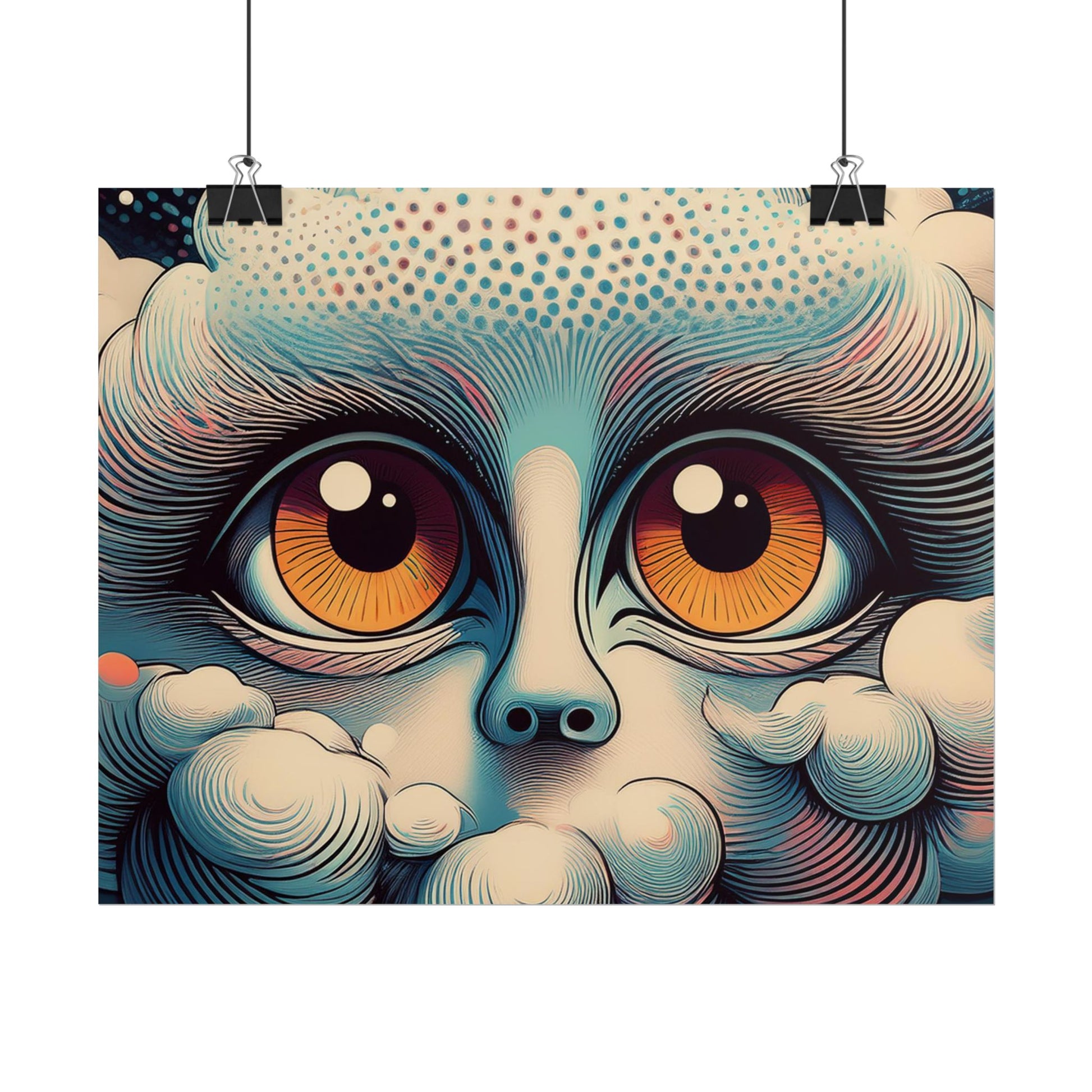 This surreal cloud eyes poster will add a dreamy touch to your home decor. Perfect for those who appreciate unique and artistic wall art. Ideal for individuals who enjoy a whimsical and ethereal vibe in their living space. Suitable for holidays, celebrations, and occasions where a creative and imaginative atmosphere is desired.