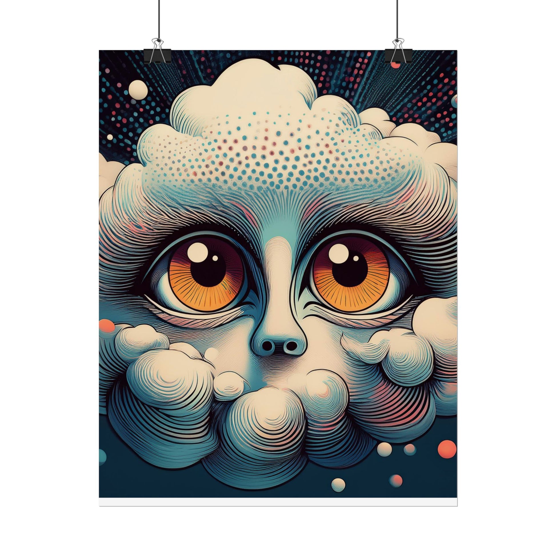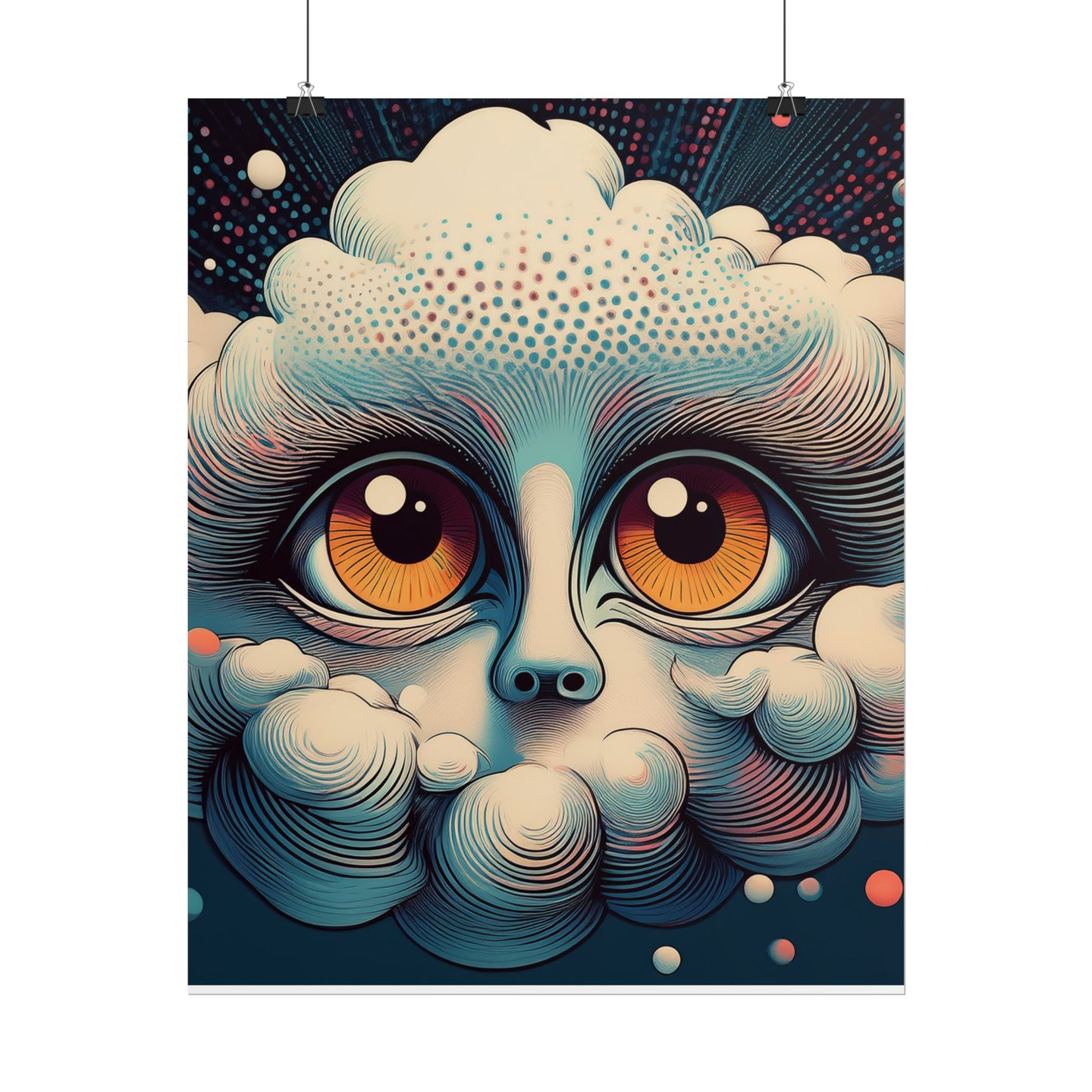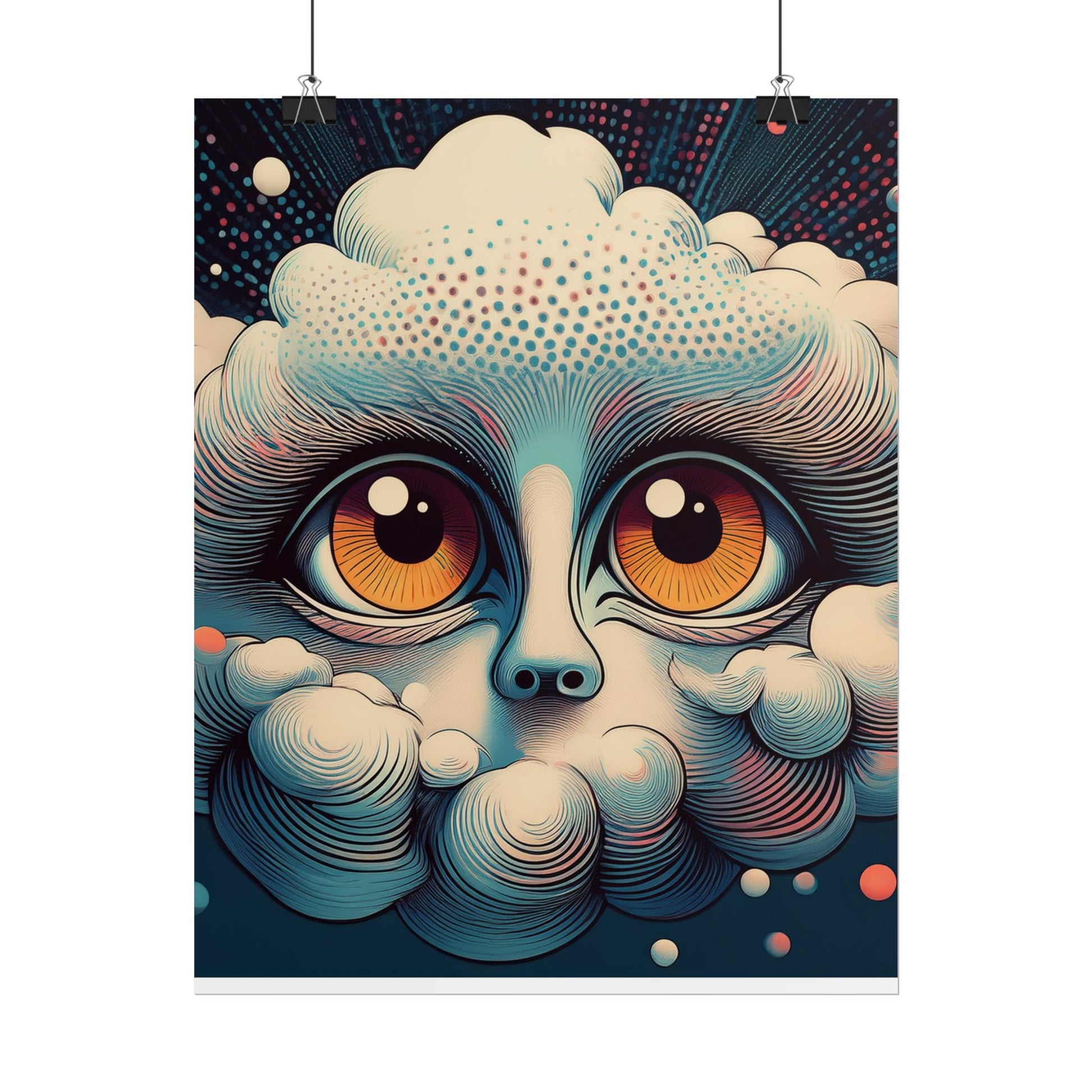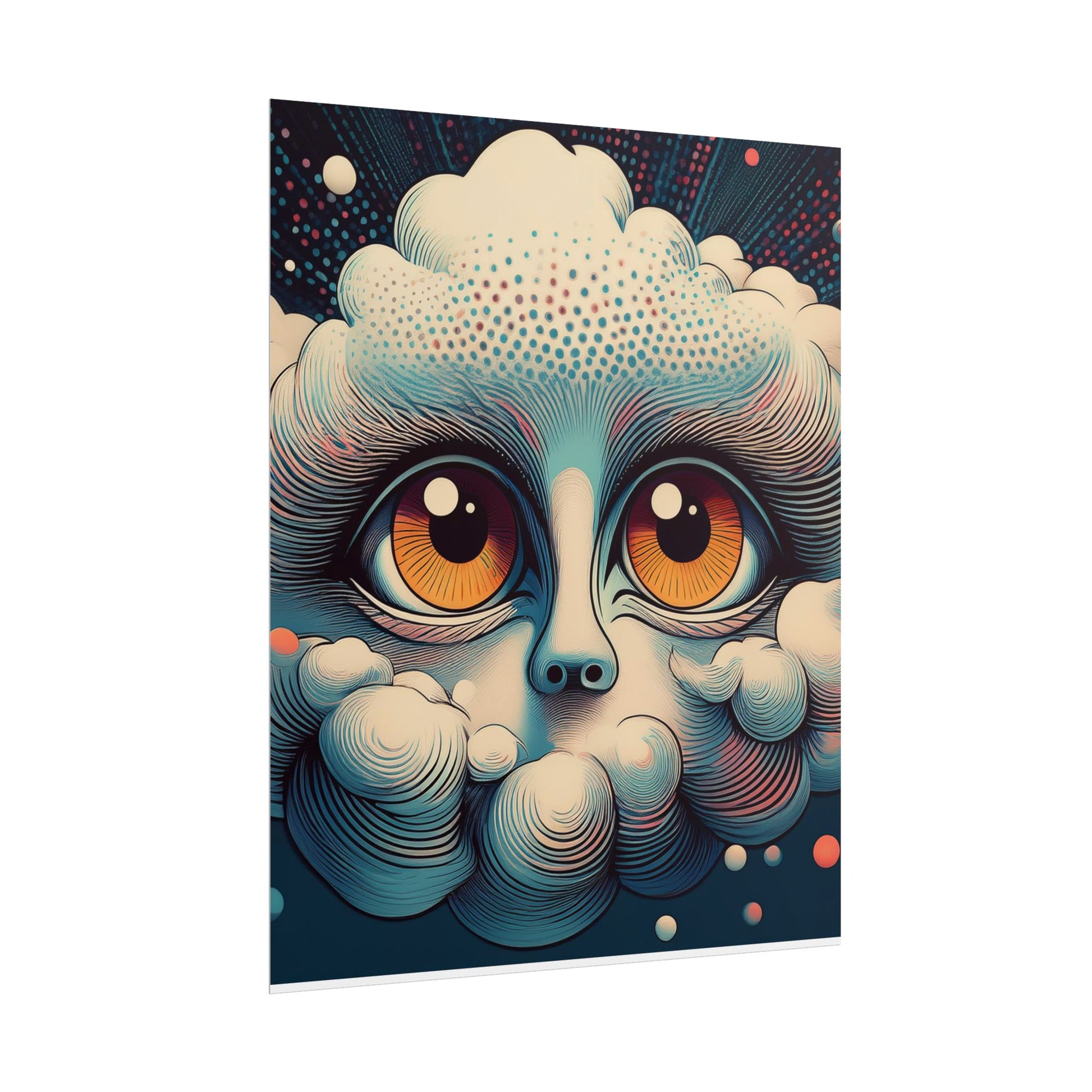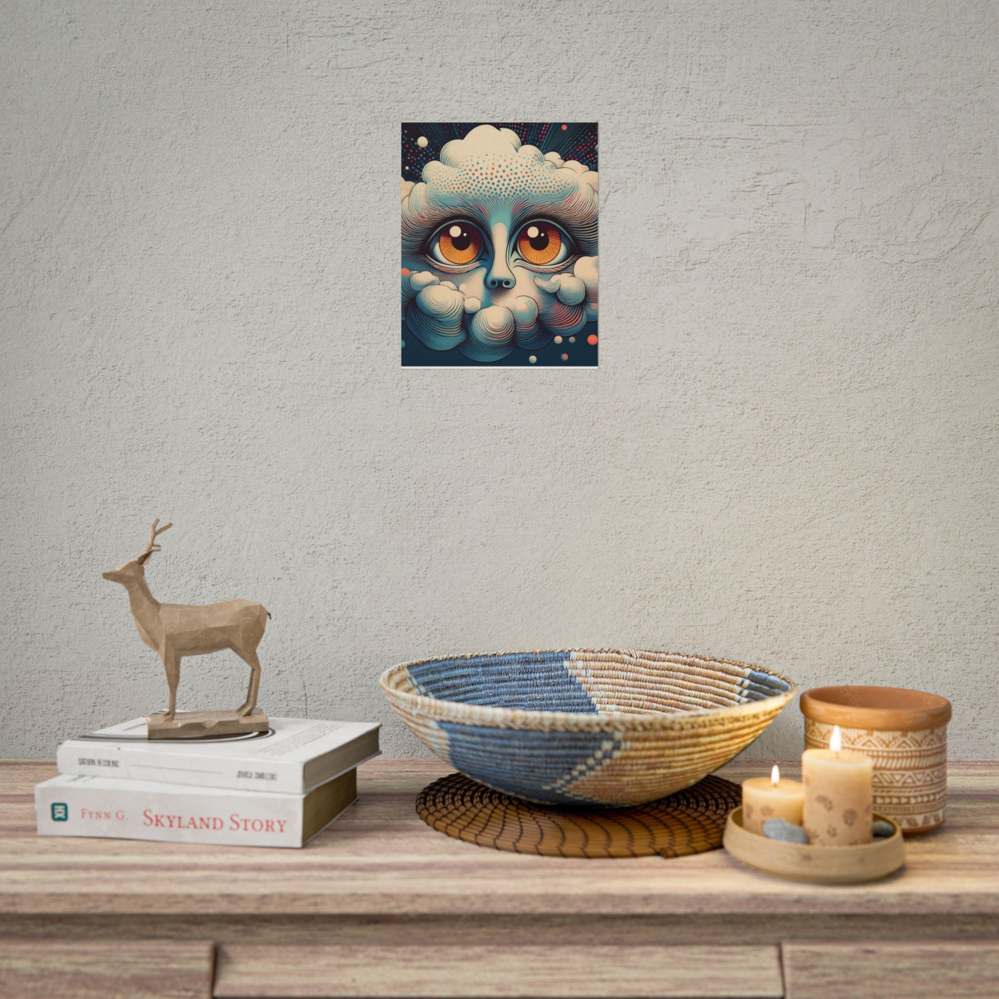 This surreal cloud eyes poster will add a dreamy touch to your home decor. Perfect for those who appreciate unique and artistic wall art. Ideal for individuals who enjoy a whimsical and ethereal vibe in their living space. Suitable for holidays, celebrations, and occasions where a creative and imaginative atmosphere is desired.