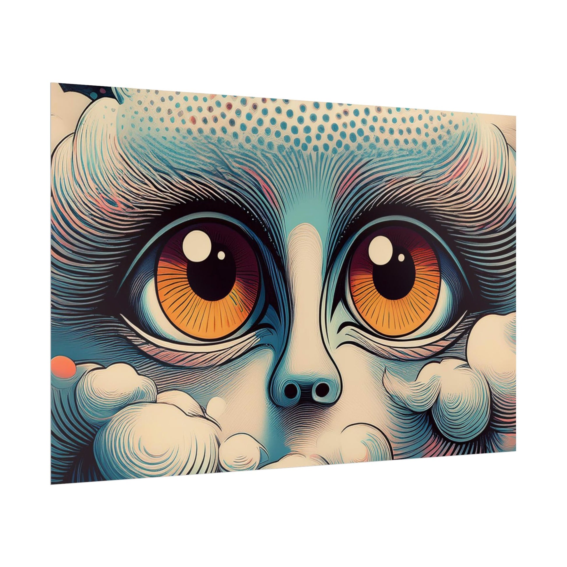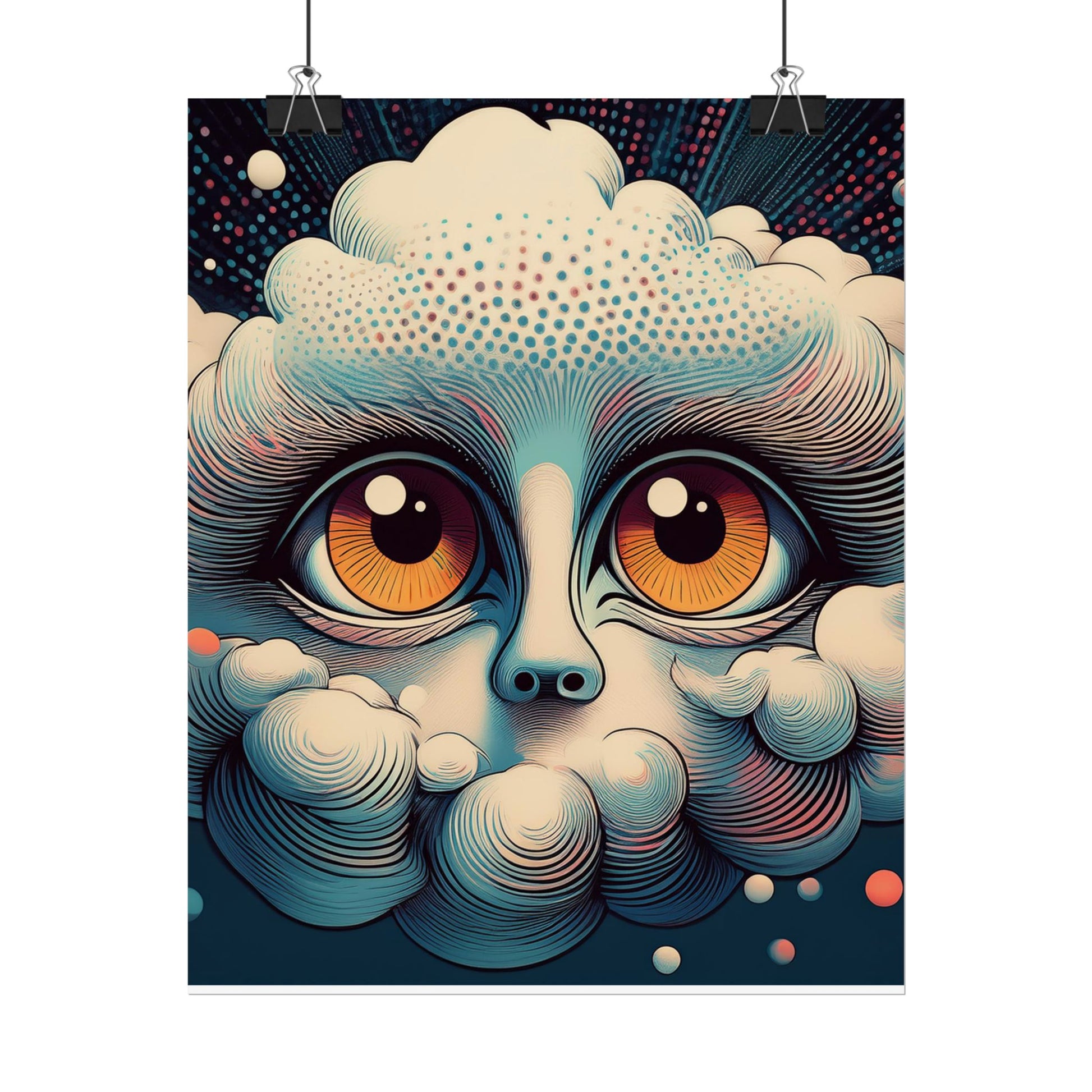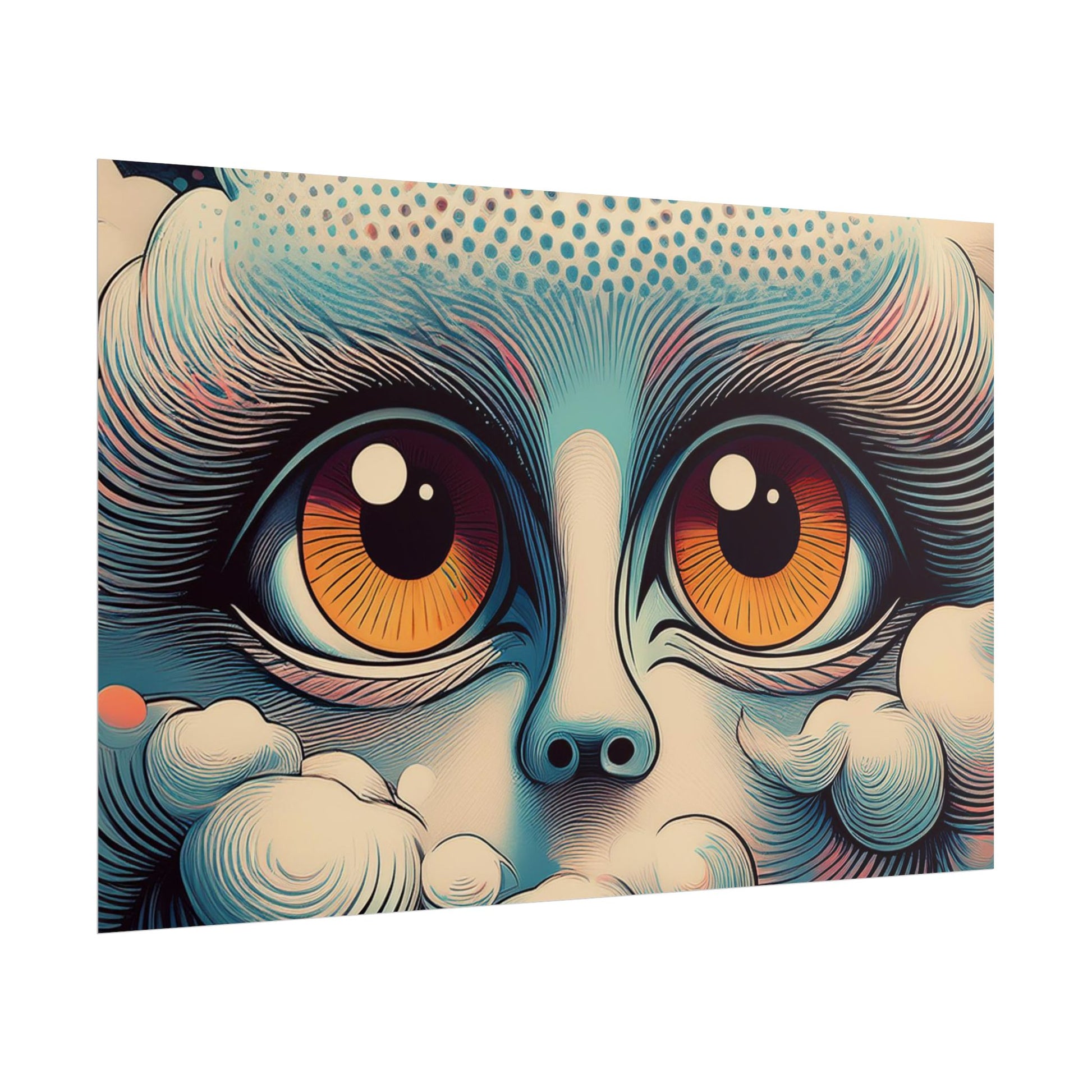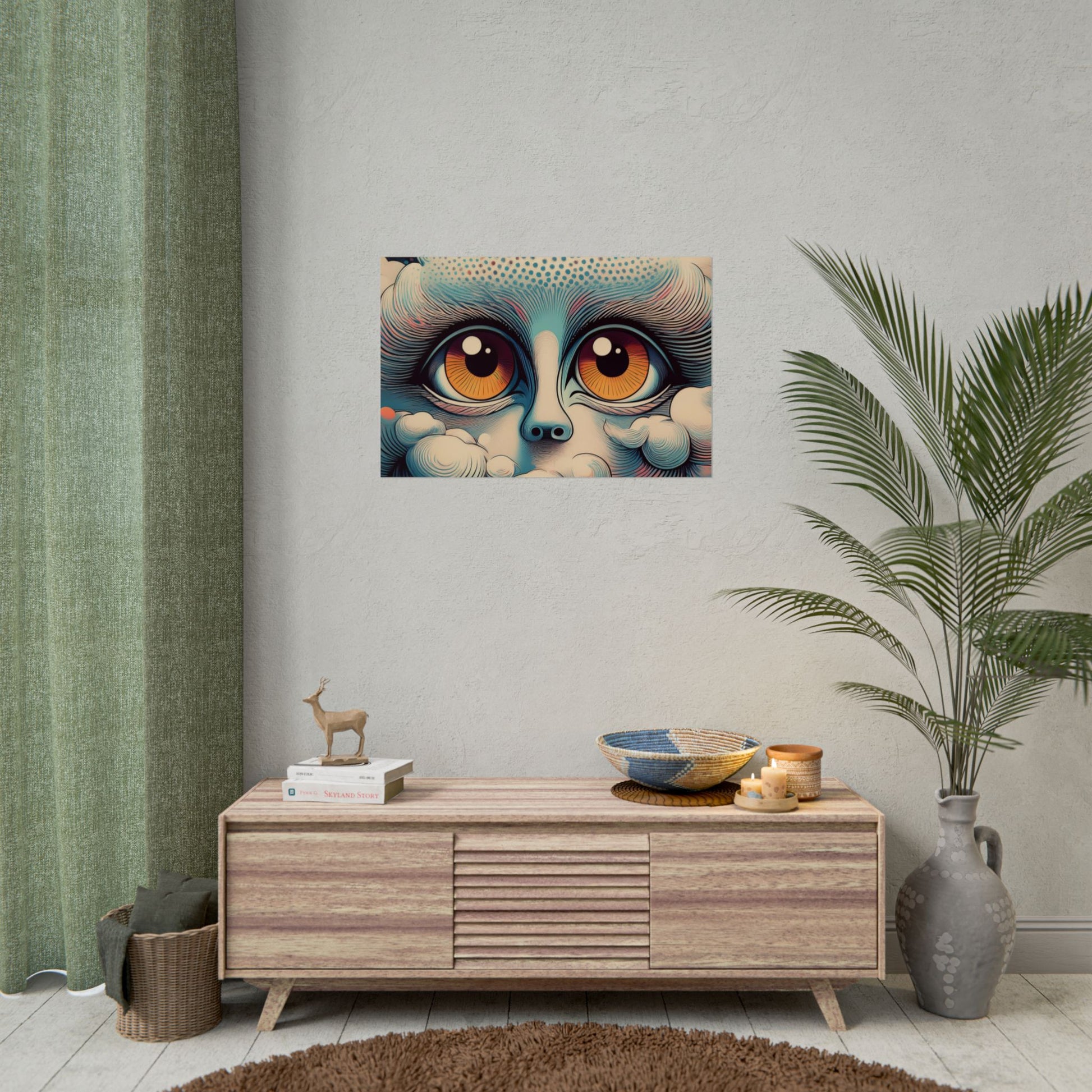 This surreal cloud eyes poster will add a dreamy touch to your home decor. Perfect for those who appreciate unique and artistic wall art. Ideal for individuals who enjoy a whimsical and ethereal vibe in their living space. Suitable for holidays, celebrations, and occasions where a creative and imaginative atmosphere is desired.